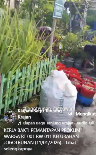 KERJA BAKTI PEMANTAPAN PROKLIM WARGA RT 001 RW 011 KELURAHAN JOGOTRUNAN (11/01/2026) Kerja Bakti telah menjadi program rutin dengan jadwal menyesuaikan di Lingkungan RT ...
